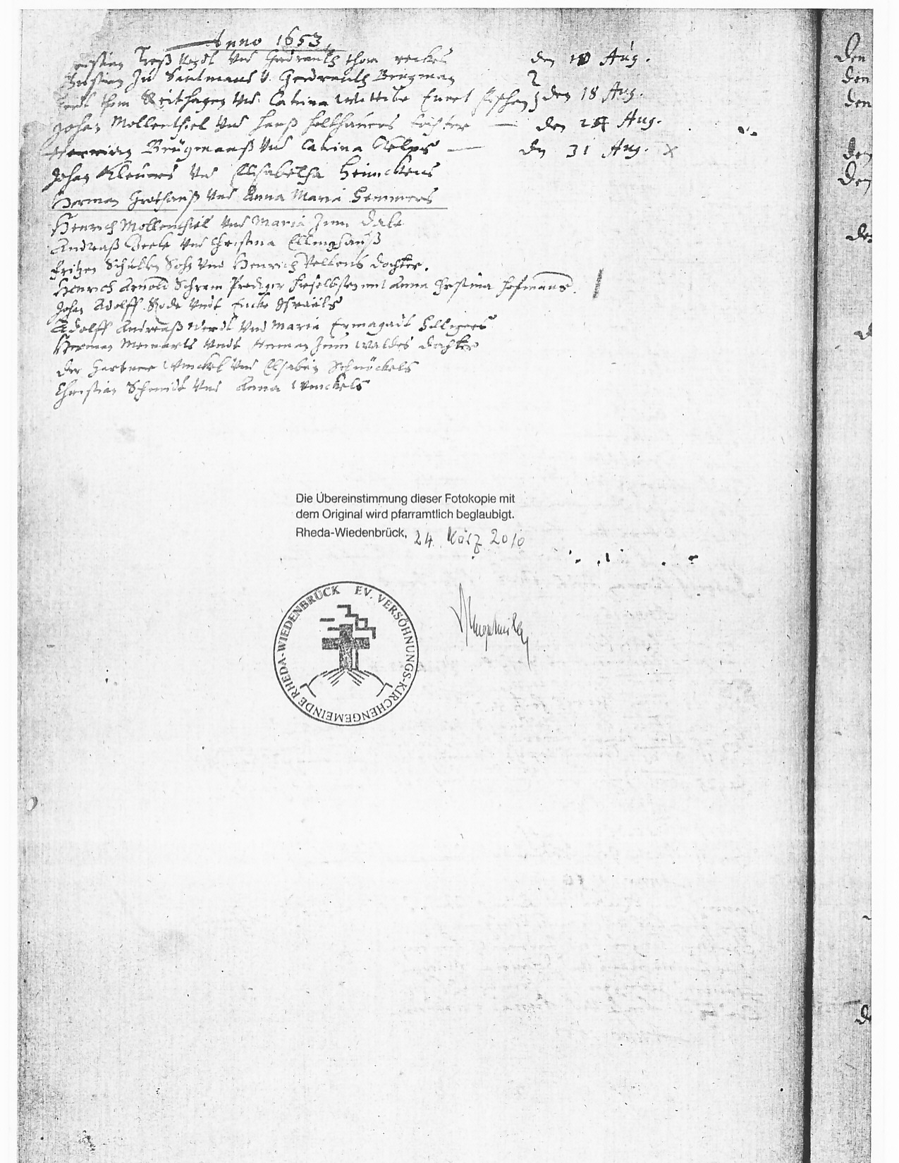 1653 - Marriage: Harman Grothaus and Anna Maria Hemmers, Evangelic Church, Rheda, Tecklenburg