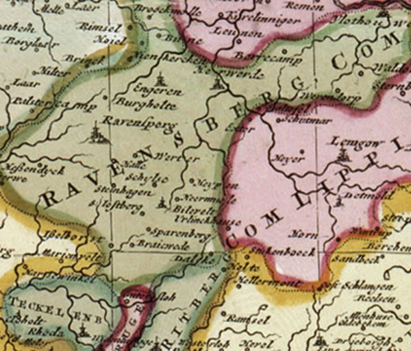 Harman Grothaus and Anna Maria Hemmers were married at the Evangelic Church of Rheda, Techlenberg in 1653. February 8, 2016 Update: Initial efforts to locate Herman Grothaus in the Bielefeld church records were unsuccessful. In November 2015, while, while Thomas Hutzelman of Eerie, PA was searching an online archive of church records of the surrounding parishes of Bielefeld, he found the records of the family in the parish of Gross-Dornberg, the next town west of Bielefeld. Birth/baptismal and confirmation records for our Herman Grothaus and several of his children, including Heinrich and his twin Alff, born on 9 Jan 1695, and Johann Adolph, born on 12 Aug 1696, were found in the records of the Evangelical Lutheran Church at Kirch-Dornberg, located west of Gross-Dornberg. Further correspondence between Thomas and researchers in the Bielefeld area yielded the records of Pastor Kenter in the Bielefeld Evangelical Church Archives, which enabled us to trace the family of Herman Grothaus back into the mid-1500s. The discovery of birth/baptismal and confirmation records for our Herman Grothaus and several of his children found in the records of the parish church, St. Peter's Evangelical Lutheran Church, located in the village of Kirchdornberg, has revealed that Pastor Schlegelmilch was mistaken to conclude that Herman and Anna Maria Hemmers Grothauss who were married at the Evangelical Lutheran Church of Rheda in 1654, were the parents of our Herman Grothaus who immigrated to Springfield, Philadelphia County, PA, by 1710. Article: Grothaus of Grossdornberg, Westfalen