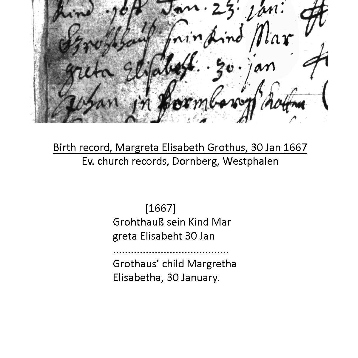 Birth record, Margreta Elisabeth Grothus, 30 Jan 1667