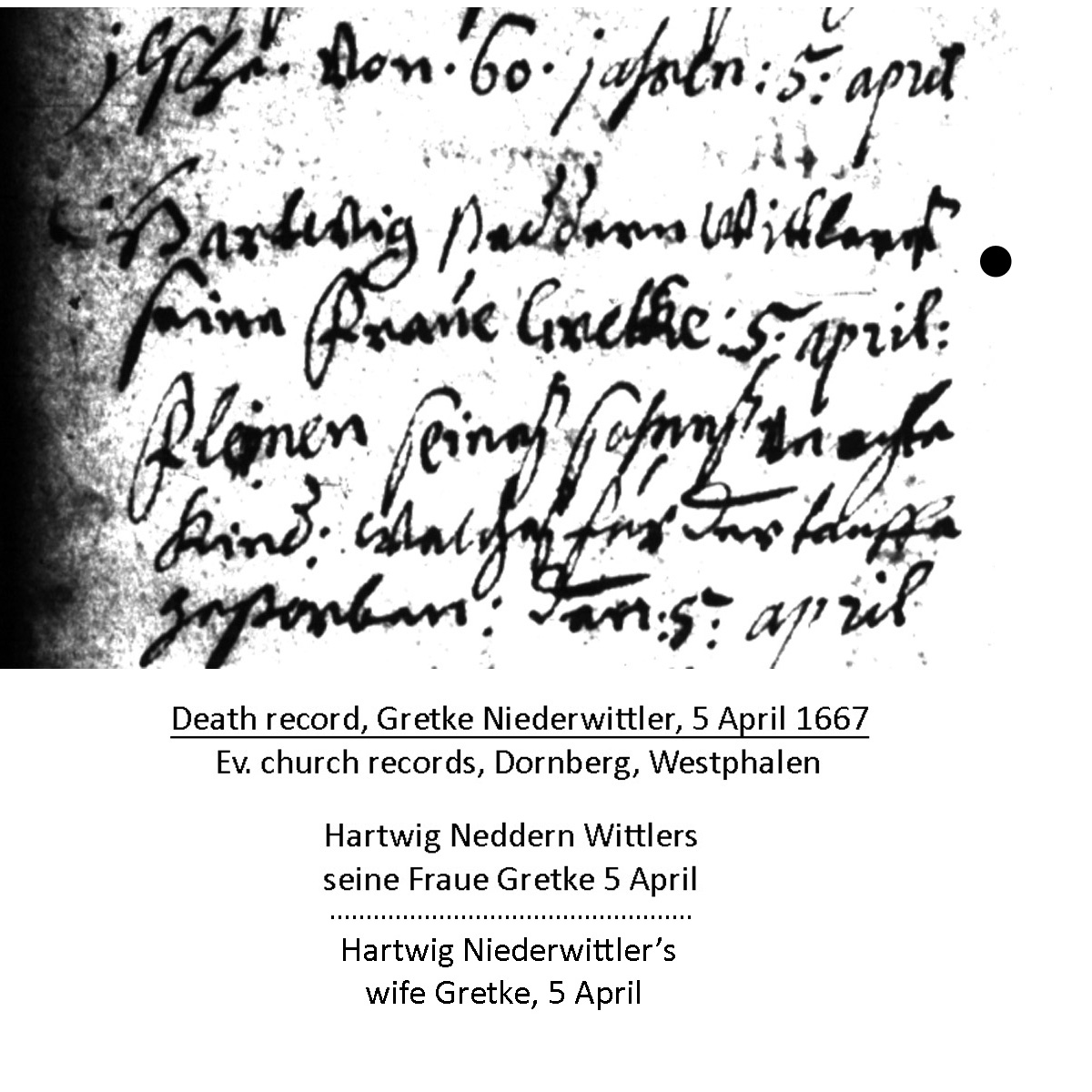 Hartwigs erste Frau is am 5 April 1667 gestorben