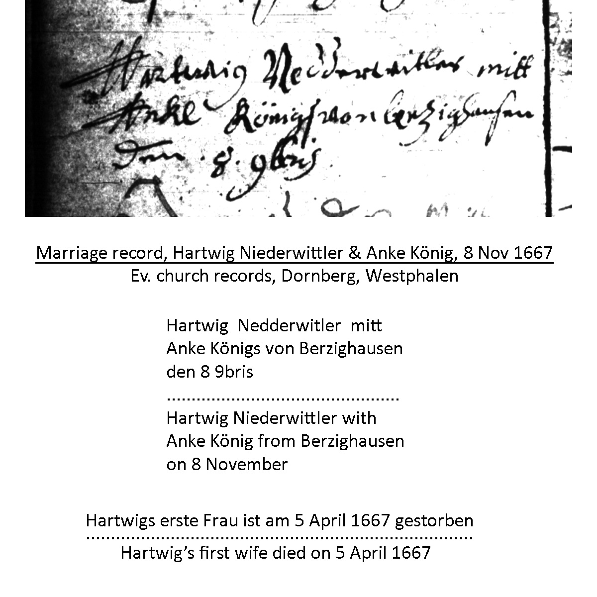 Marriage record, Hartwig Niederwittler & Anke König, 8 Nov 1667