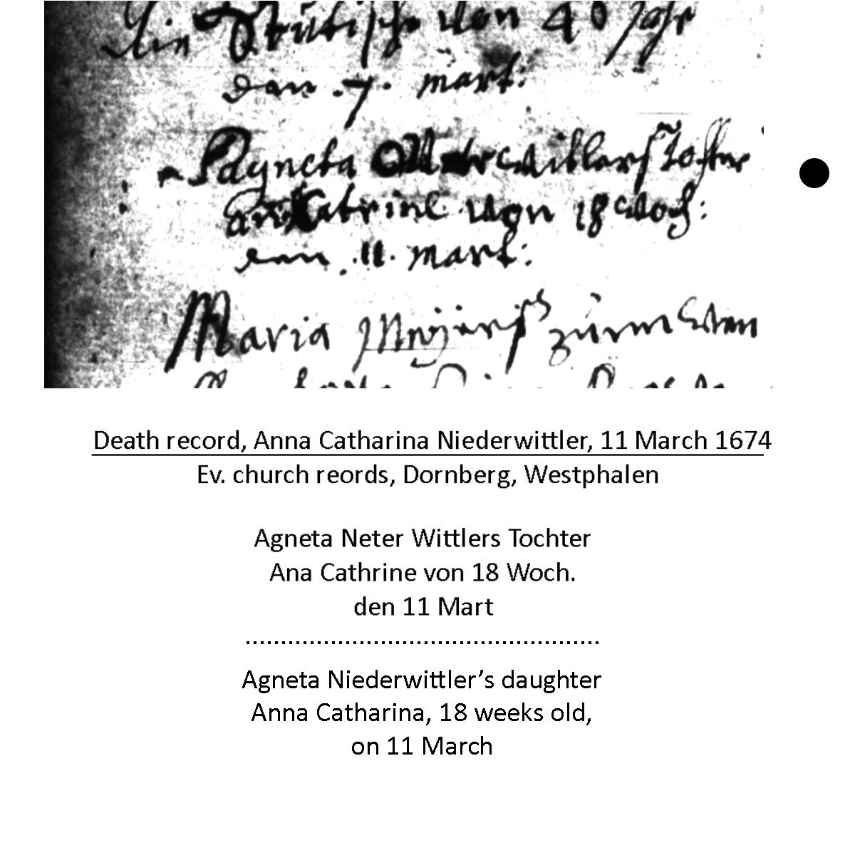 Death record, Anna Catharina Niederwittler, 11 March 1674