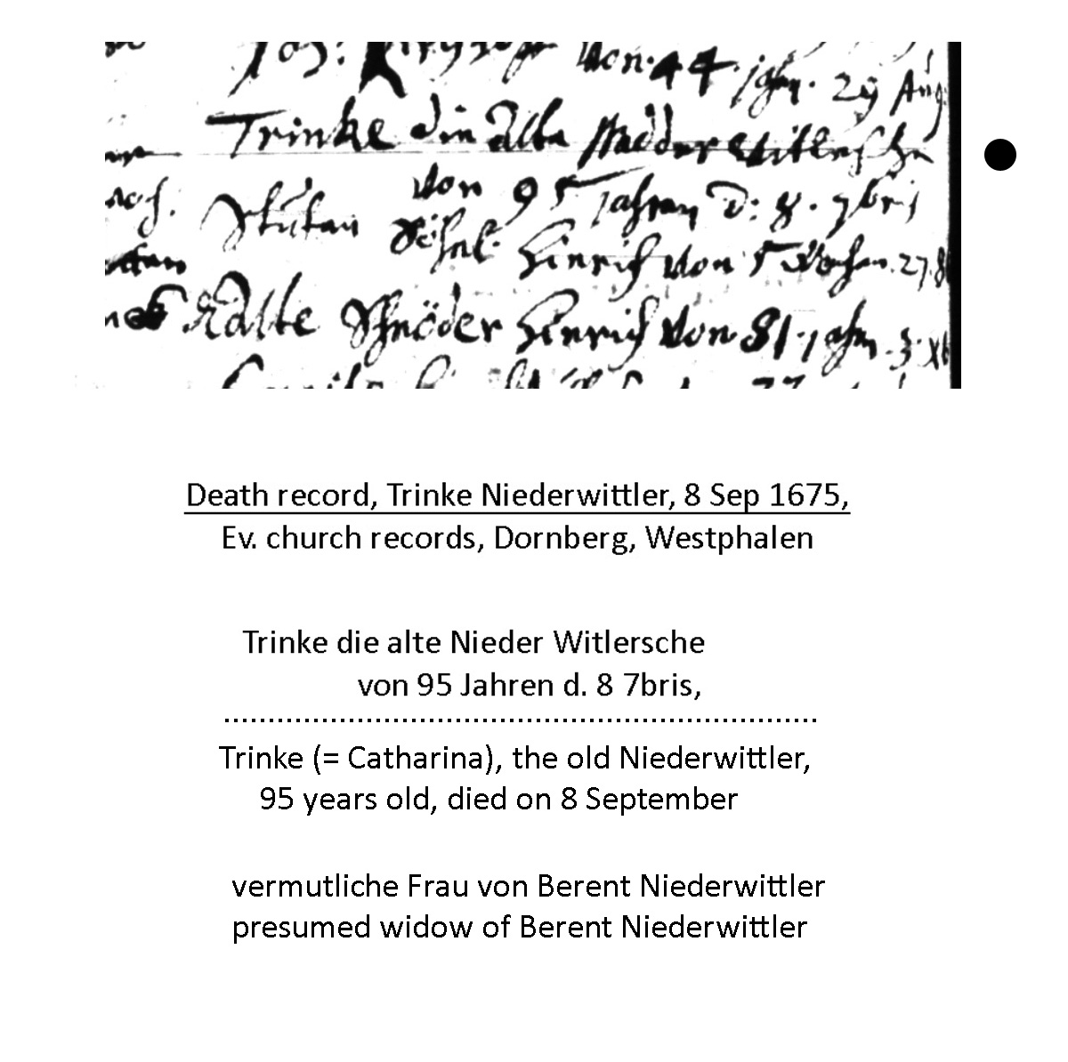 Death record, Trinke Niederwittler, 8 Sep 1675