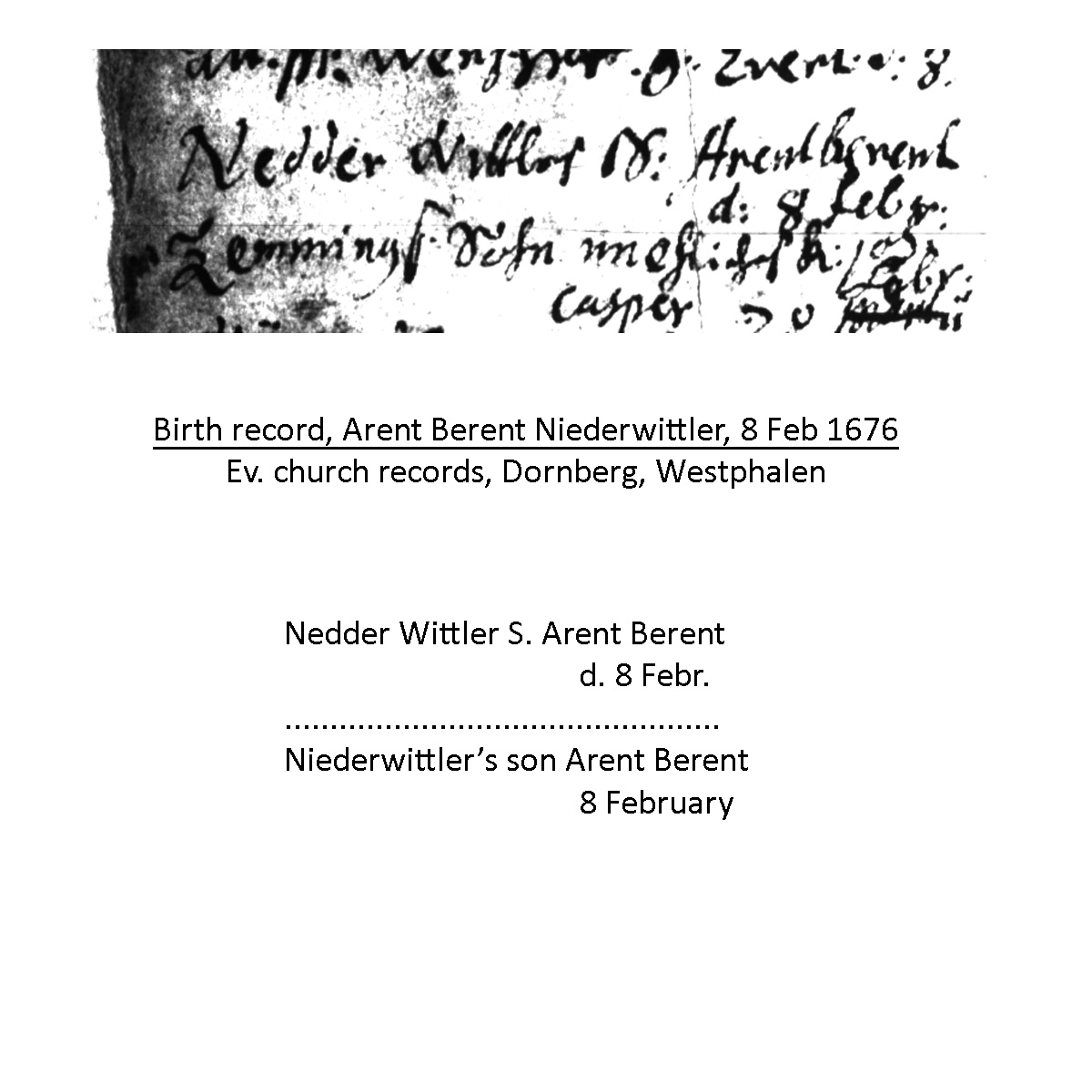 Birth record, Arent Berent Niederwittler, 8 Feb 1676